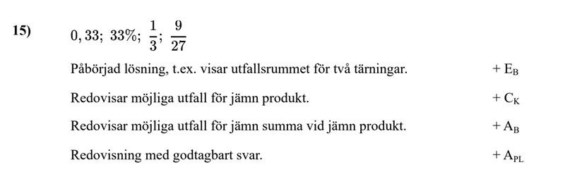 P(jämn summa) = Antal jämna summor/Antal jämna produkter