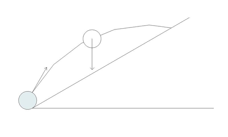 Vilken riktning har gravitationskraften i din modell? Den kan ju inte vara lodrät, när du har vridit på marken.