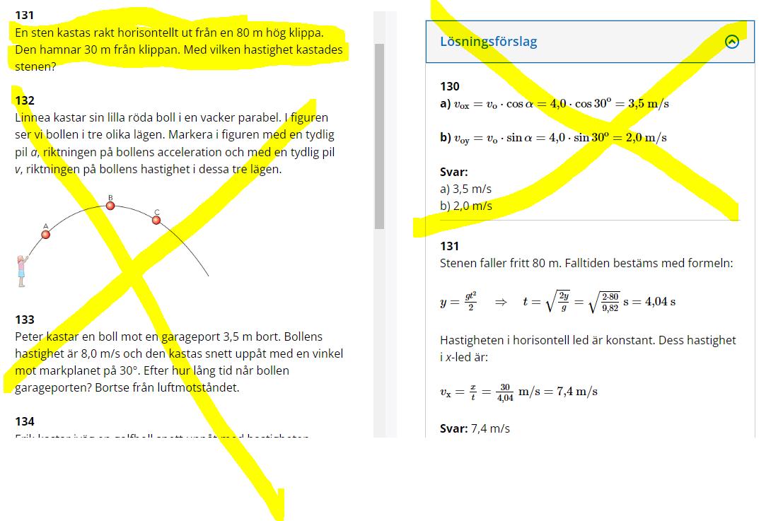 Jag är förvirrad med den här uppgiften. De använder alltså formeln s=v0t+at^2/2 och skriver alltså hastigheten i y-led som noll ursprungligen. Men har den inte en hastighet som den kastas iväg med i y-led?