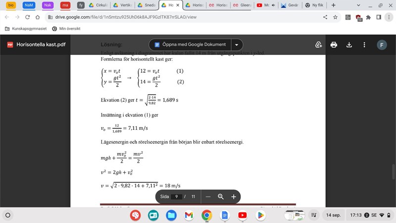 jag ser nu varför energiprincipen är enklare att använda i sånna fall, men jag undrar hur jag kan använda kast uppåt formeln för att räkna ut h och v, vill säkra att jag kan båda sätt