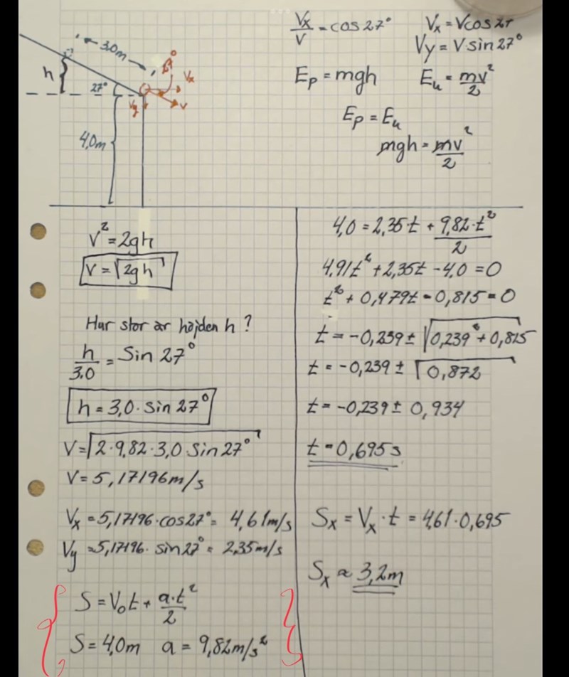 vilket var den formel som jag använde mig av från början. Med tanke på att föremålet glider ner borde inte s=-4,0m. Varför sätter man acceleration like med 9,82.? Ska inte den vara negativ också?