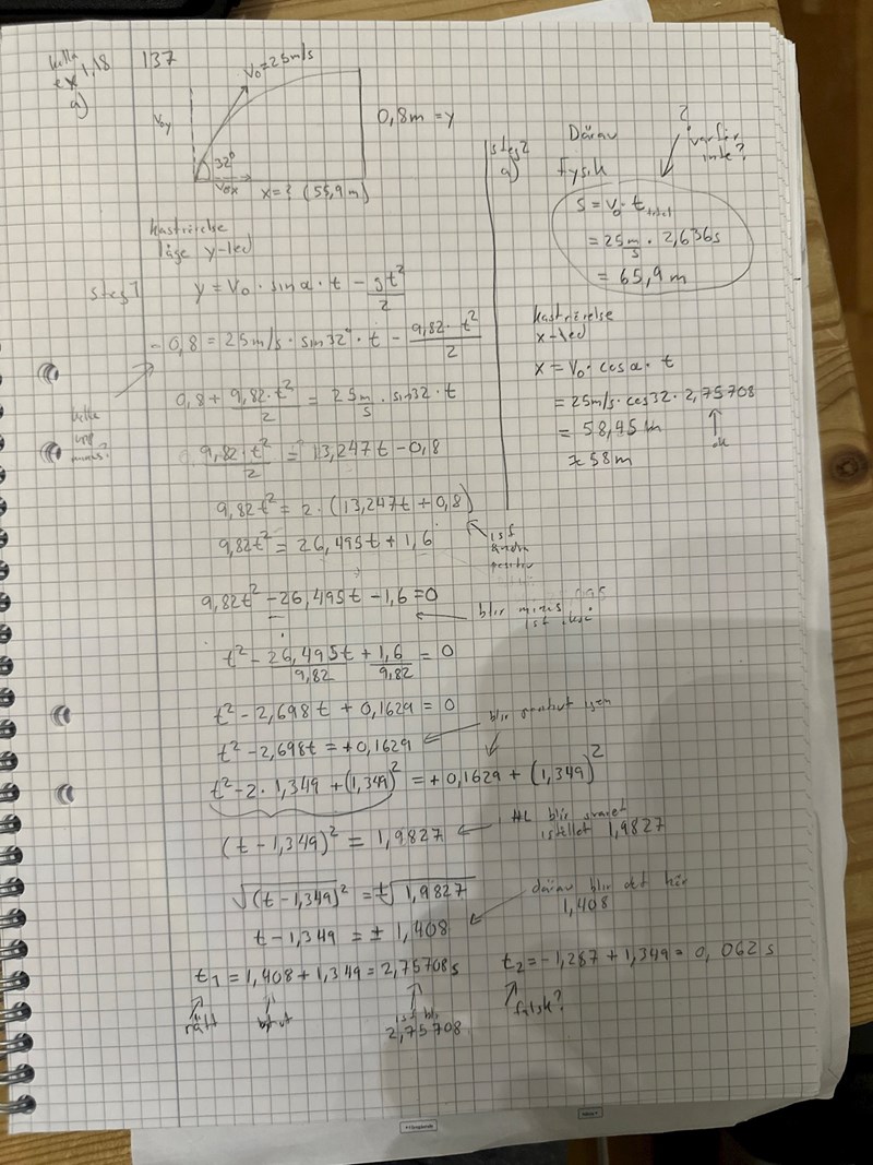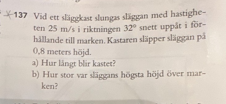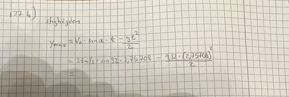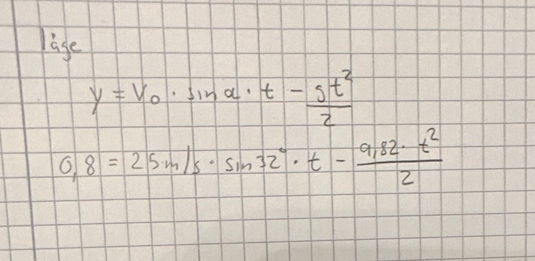 - Använda att när släggan är som högst upp så är hastigheten i y-led lika med 0. Då kan du använda att hastigheten i y-led vid tidpunkten t är