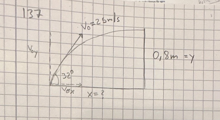 Om du istället väljer att lägga origo vid marknivå så är y0 = 0,8 meter och kulan kommer då att landa vid y = 0 meter.