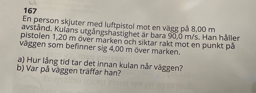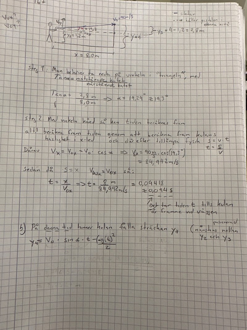 Rita in ett koordinatsystem och beräkna sedan med hjälp av positionsformeln för y var kulan träffar väggen.