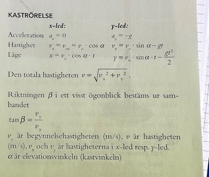 ska man börja beräkna fram tiden för hela kaströrelse genom att Vy=v0•sin a -gt ?