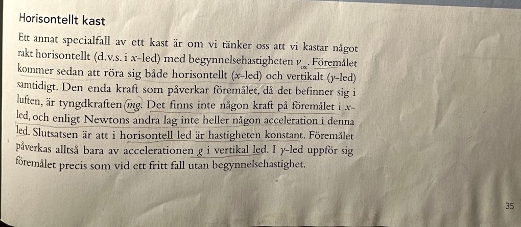 - Att den enda kraft som påverkar föremålet är gravitationen.