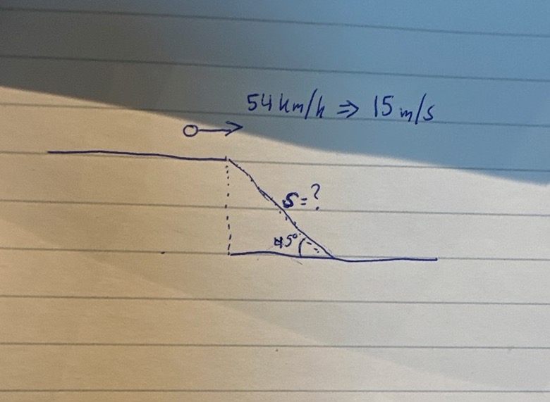 Bilen kör rakt fram när den kommer till början av backe. Kaste sker därför i vinkeln 0 grader mot x axeln.