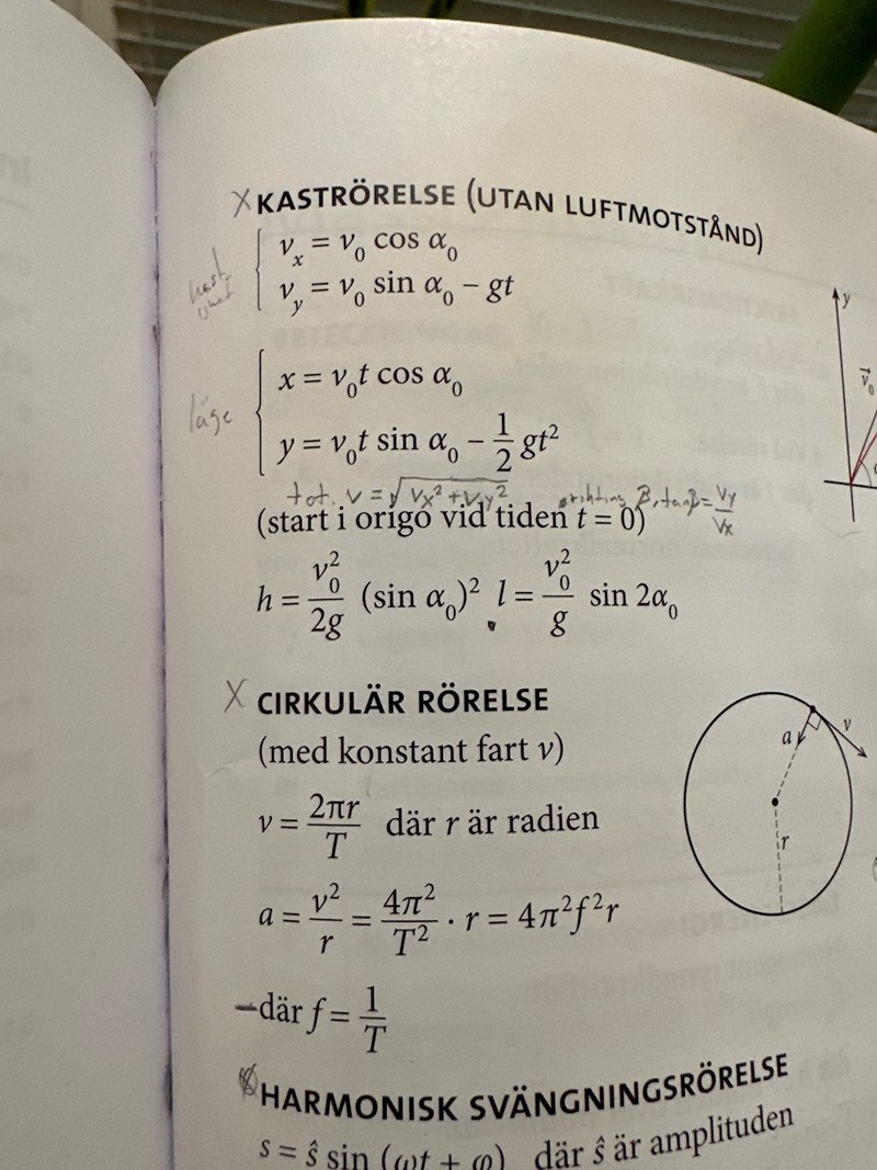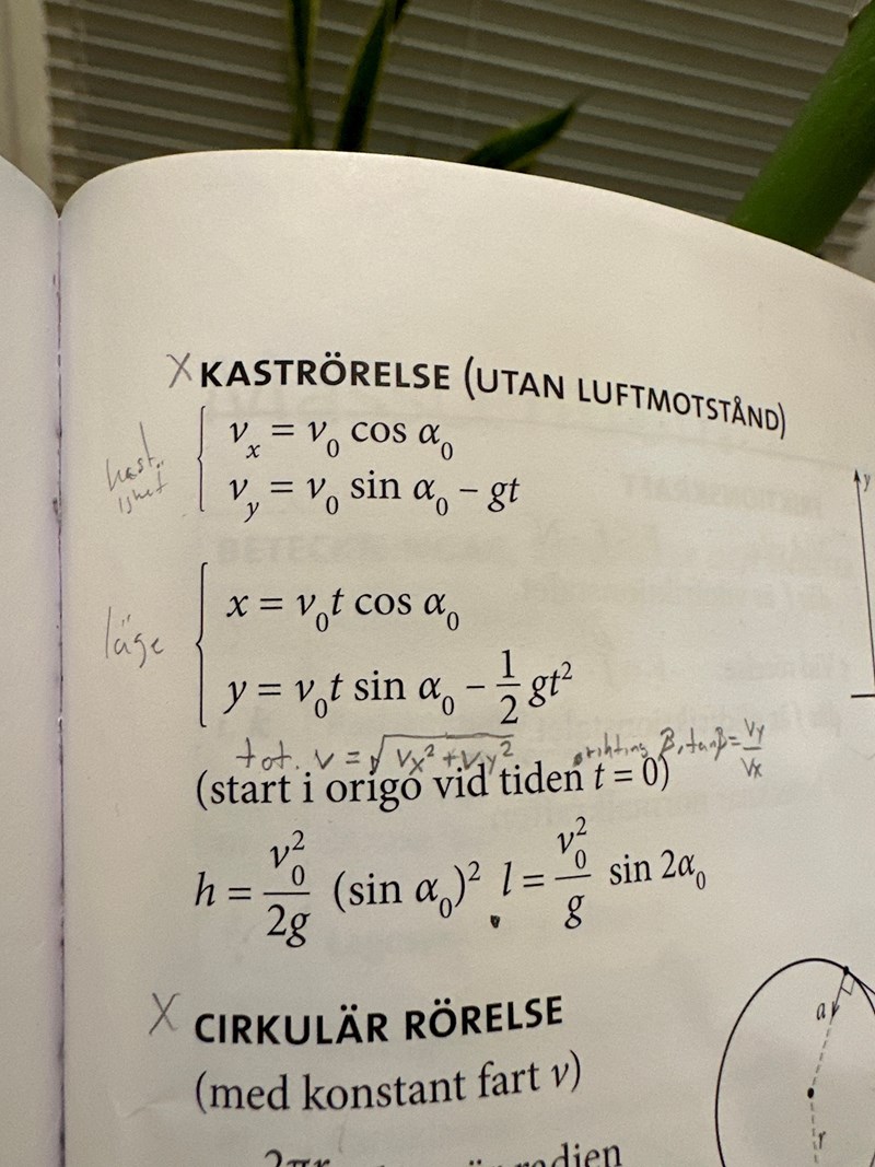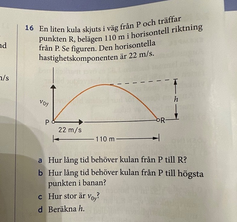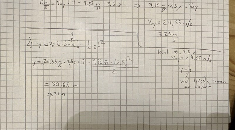I den här uppgiften blev det tvärtom. Vi hade vx, ingen vinkel, men däremot avståndet i x-led. Då fick vi räkna lite annorlunda.