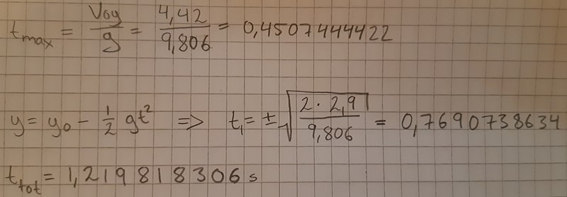 Men varför blir det inte samma tid som när man först räknar tiden det tar till ymax och sedan tiden det tar till y=0 som jag visade i ett tidigare inlägg?