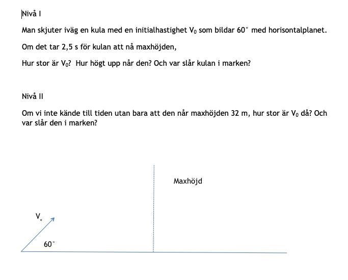 Vilka formler brukar man ha när man jobbar med kaströrelser? Kan du skriva ner dem? Om du har dem i din bok kan du ta kort på dem (i fall du inte orkar skriva ner dem)
