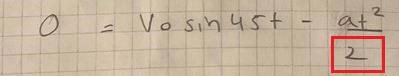 Du glömmer en faktor 1/2 i andra termen när du stoppar in tiden i uttrycket för .