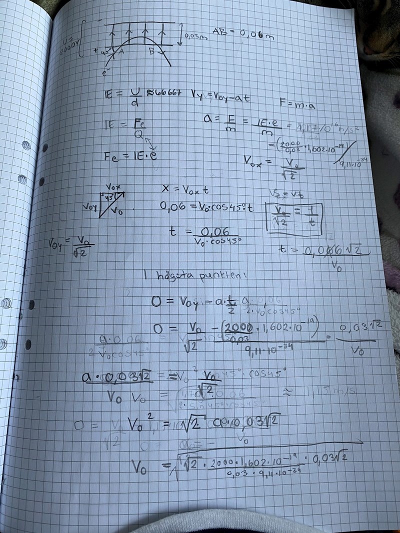 Såg nu efter att jag tog bilden att jag tagit elektronens massa som 9.11 * 10^-34 ist för -31. Men det blir ändå inte rätt