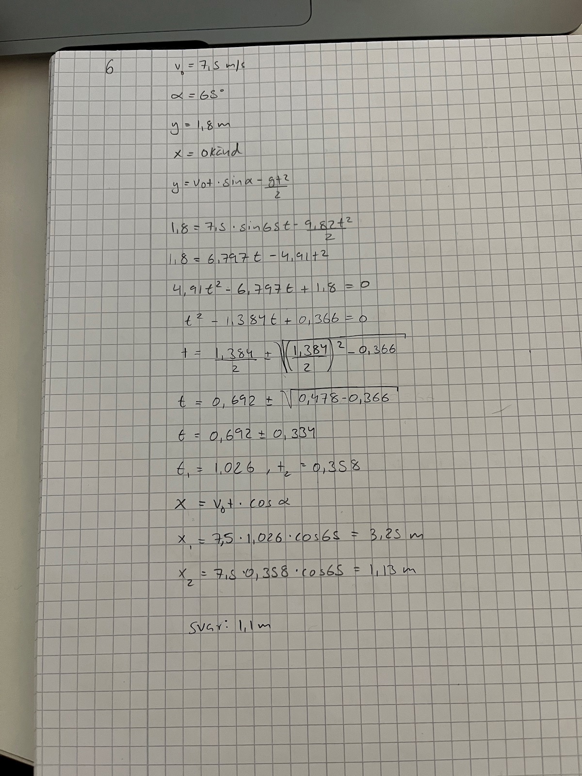 Hej, jag har ett litet dilemma när det kommer till kaströrelse, och det är att välja korrekt tidpunkt. Exempelvis denna uppgift där man ska få fram sträckan.