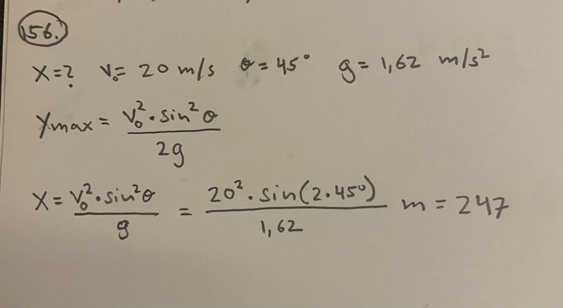 Hej, så i min formelbok finns det en formel för ymax, på svarsförslaget har det använt denna formel fast istället för att dela på 2g så delar de bara med g. Jag förstår inte hur de kom fram till denna formel och varför den ska användas, dessutom frågar frågan efter längden, alltså x, och inte höjden y.