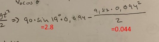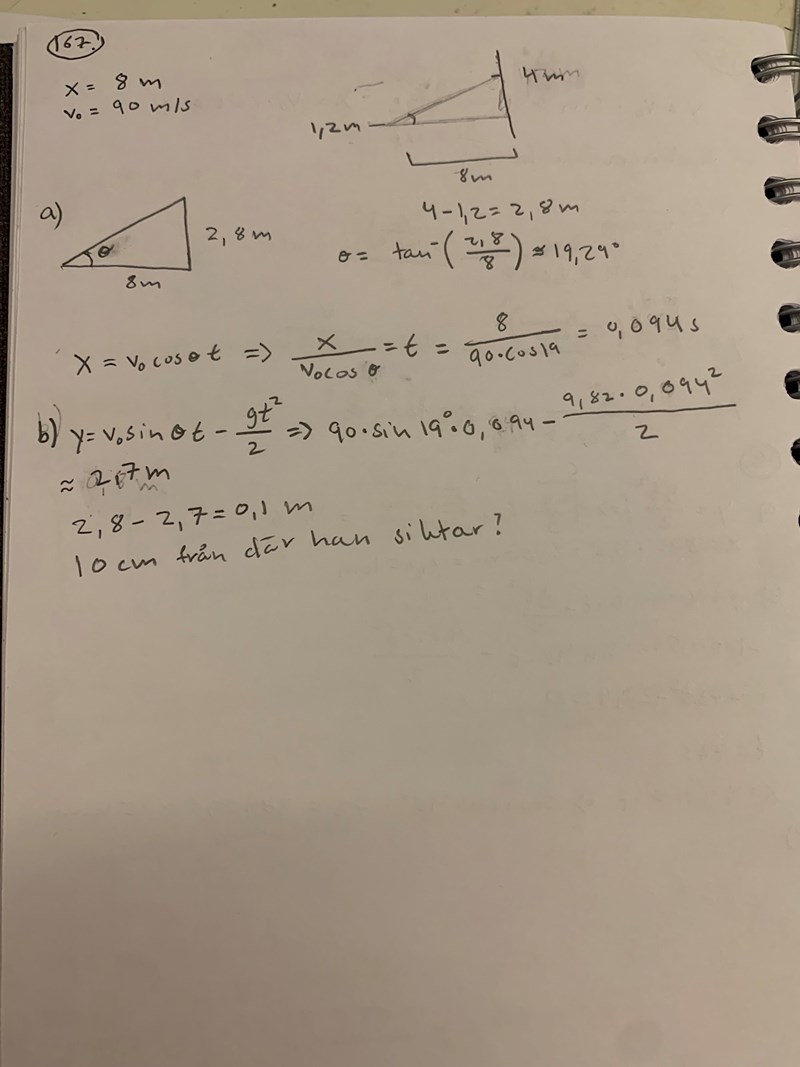 Facit säger att det blir 44mm under där han träffar det men jag får ett annat svar, vad har jag gjort för fel?