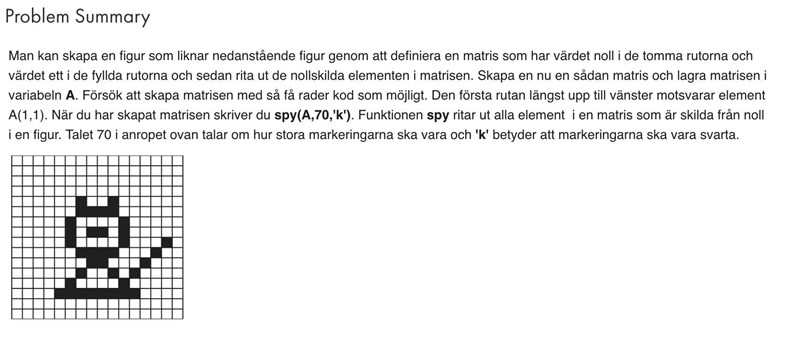 Jag har följande problem i matlab, som måste lösas med så få rad som möjligt.
