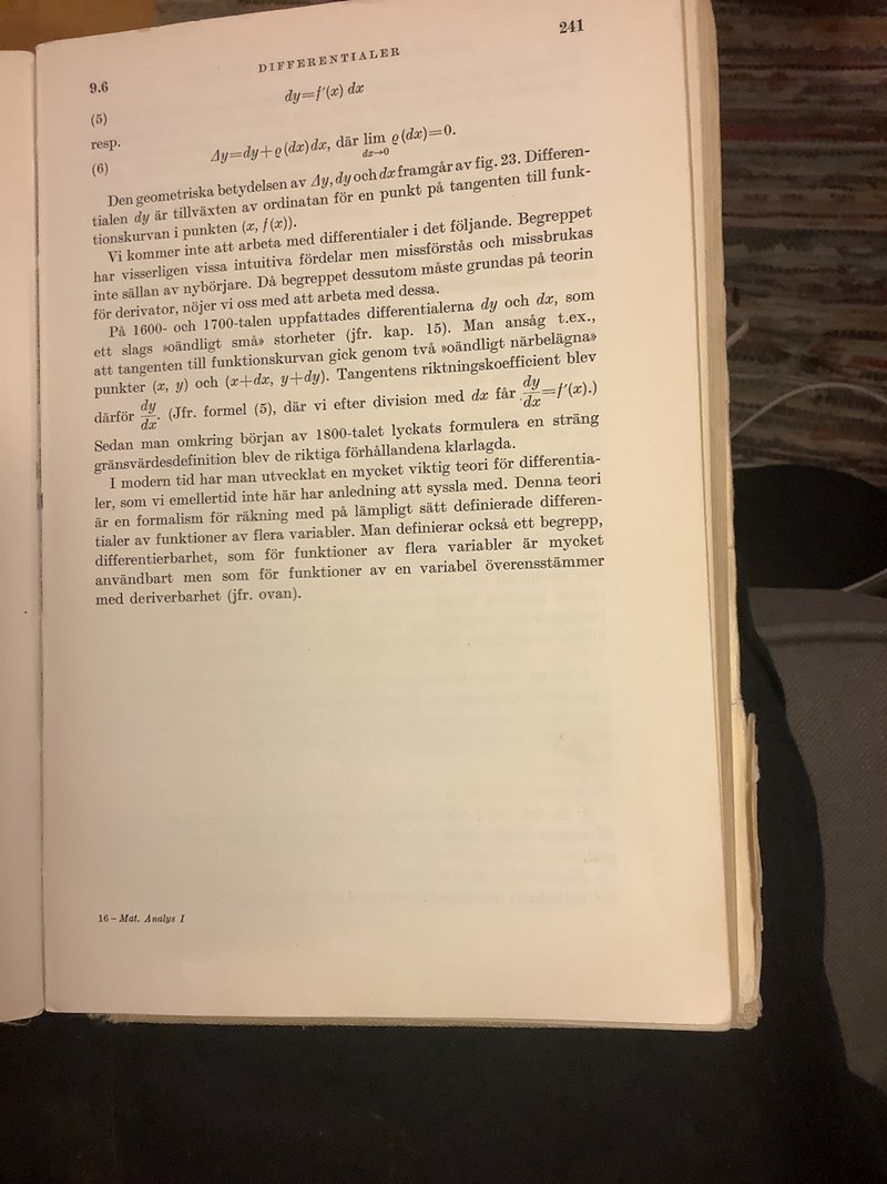 Spännande. Jag förstår vad du menar, men jag håller inte med om att vi kan gå från direkt till . Att multiplicera med kräver ju att vi accepterar att vi kan tillskriva differentialerna numeriska värden. Man kan givetvis säga att: