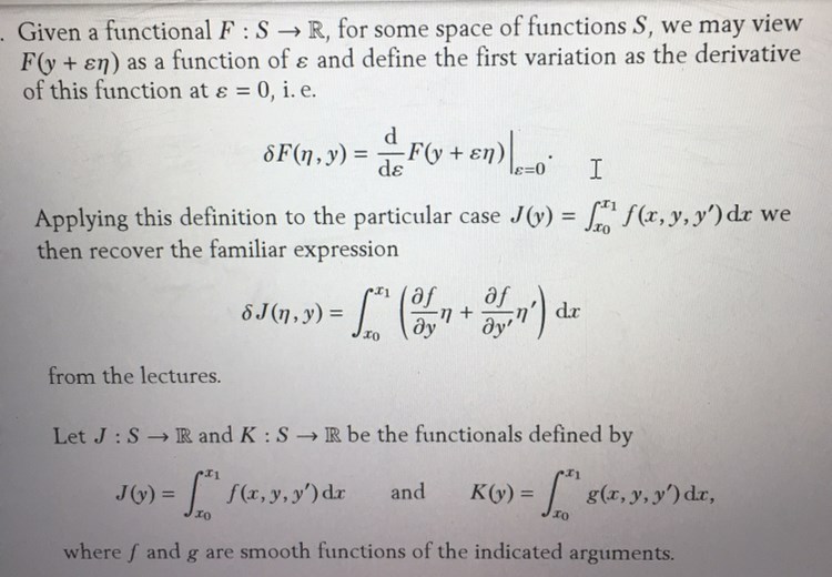 You are probably expected to start from the general definition of the Gateaux variation (the one with F) rather than the ”particular case” δJ.
