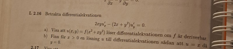 jag förstår inte 2.16 b) och är osäker på hur den skall tolkas. Jag är osäker på om de menar att vi skall ha typ 2u*0*u'x-(2u+02)*u'y=0