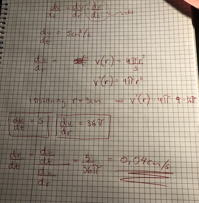 dr/dt är det bara att radien ändras beroende på tiden som en vanlig funktion som måste sedan deriveras eller är den en hastighet från början?