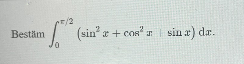 Jag undrar om man även vid integralberäkningar ska tillämpa kedjeregeln? Exempelvis uppgiften nedan. Om jag ska skriva integralen av sin(x)2 ska jag då skriva -2cos(x) eller enbart -cos(x)2? (Obs: jag vet att det i uppgiften nedan är enklast att bara skriva om sin(x)2 + cos(x)2 till 1 mha trig 1:an, men tog bara denna uppgift som exempel för att visa vad jag menar).