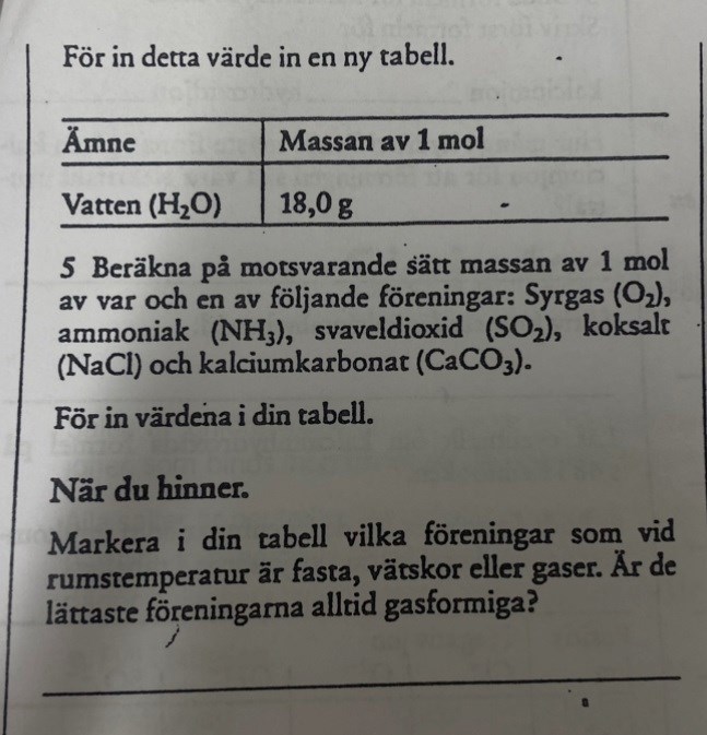 Smaragdalena skrev:Katnisshope skrev:hej, jag har precis börjat läsa kemi 1. Det finns en fråga som jag inte förstår.