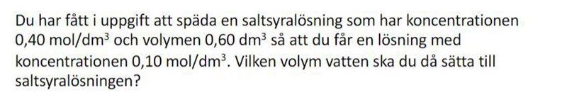 mag1 skrev:Vid spädning av lösningar är det ofta bekvämare att använda följande sammanband: