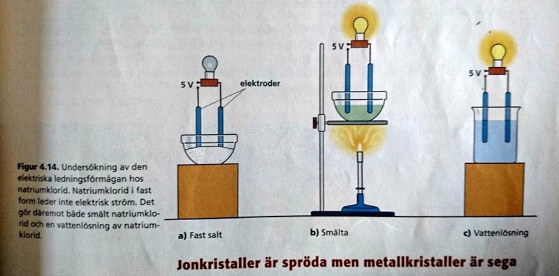 Salter som lösas upp i vatten leder strömen, pga positiva katjoner (positiva för att alla gillar katter, yay!) som attraheras av katoden, och negativa anjoner (negativa för att alla ogillar onions, bwee!) som simmar till anoden.