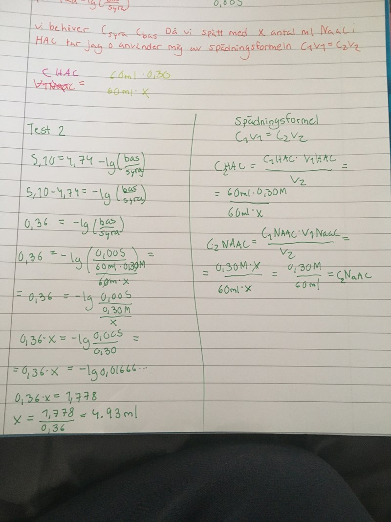 okej för jag vet inte ärligt själv vad jag använde men testar med buffertformeln och återkommer!