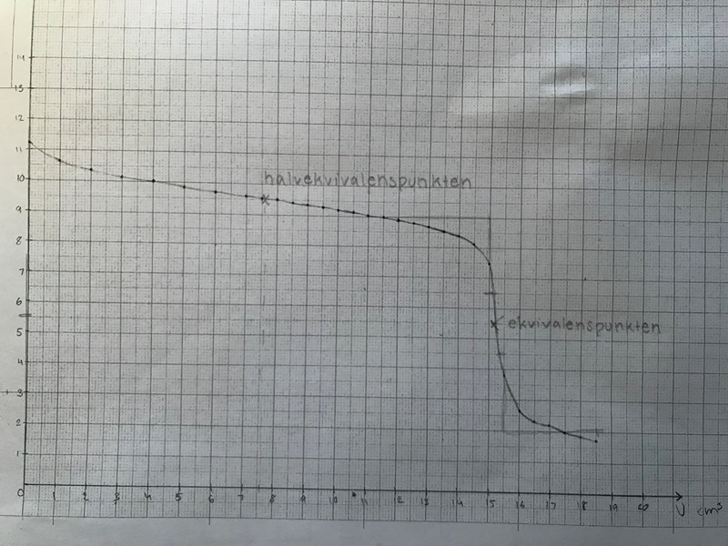 När man titrerar tillsätter man ett ämne till ett annat med hjälp av en byrett. I den här titreringen ska du bestämma koncentrationen av en vattenlösning av en svag bas (NH3) genom att tillsätta saltsyralösning (HCI) droppvis till ammoniaklösningen. Med hjälp av en pH-meter bestäms pH. Sedan avsätts pH-värdet mot tillsatt mängd saltsyra i ett diagram - man får då en så kallad titrerkurva. Med hjälp av denna kurva lokaliseras ekvivalenspunkten, d v s den punkt då man tillsatt lika stor substansmängd syra som substansmängden bas i den ursprungliga lösningen. Sedan kan koncentrationen av ammoniak bestämmas.