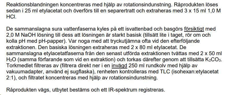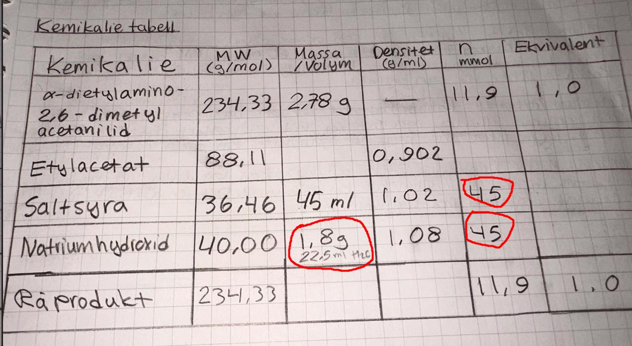 (OBS. massan och substansmängden alfa-dietylamino... har jag räknat från tidigare laboration)