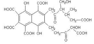 Utifrån bilden nedan ge en rimlig kemisk förklaring till att sjön går från brunfärgad till klar om den blir kraftigt försurad. Ledning: I molekylen finns många -COOH grupper (karboxylsyragrupper).