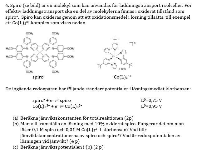 Kemisk jämvikt 10% oxiderat spiro delfråga b