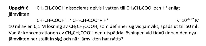 Har du räknar ut koncentrationerna för propionsyra, propionatjoner och oxoniumjoner i lösningen med koncentrationen 0,1 mol/dm3?