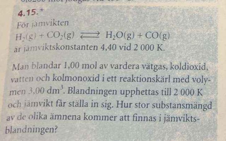 Jag har fastnat på denna uppgiften om kemisk jämvikt