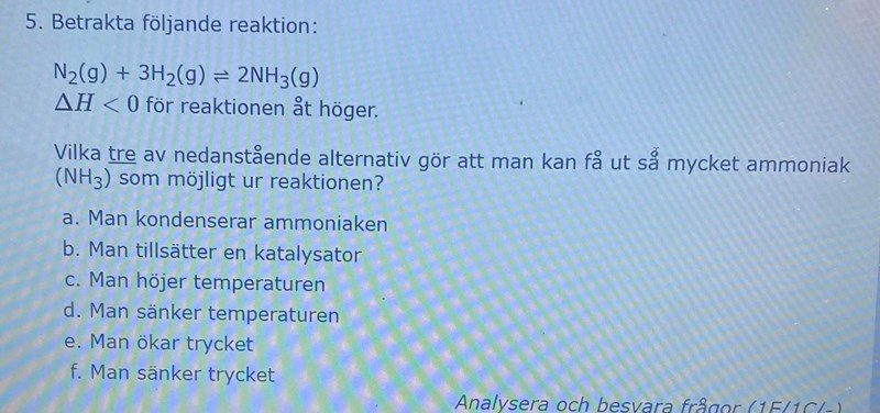 Jag har fastnat på denna uppgift, vad menas med att man kondenserar ammoniak och hur påverkar det isåfall jämviktsuttrycket?