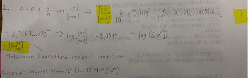 Som jag förstår facit, så tycker de att [Cu2+] från Cu + 2e- <-> Cu2+ motsvarar [ox]/[red] från Nerst ekvation. Men hur kan dom anta det?