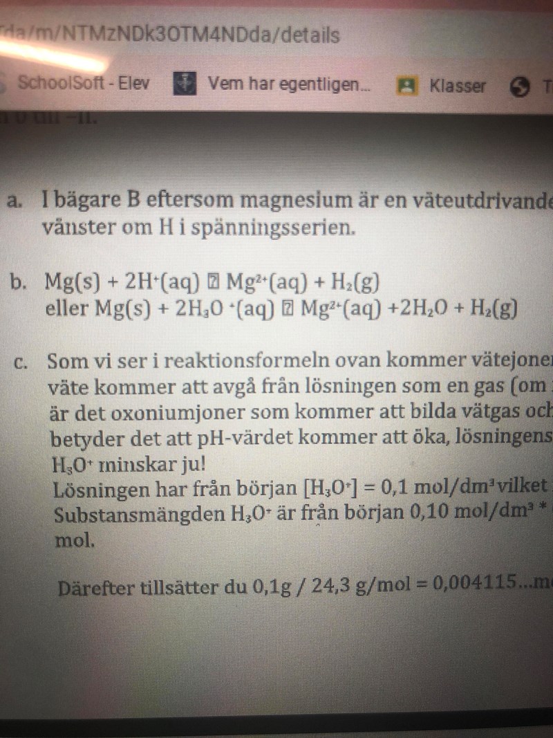 När mg reagerar med Hcl skriver jag att reaktionsformwln är