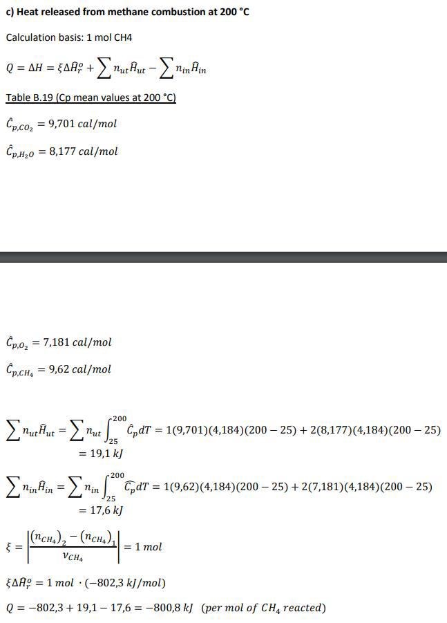 Där Cp är värmekapaciteten för de olika ämnena som kommer ut. 200 grader är alltså mitt referenstillstånd. Ser det bra ut?