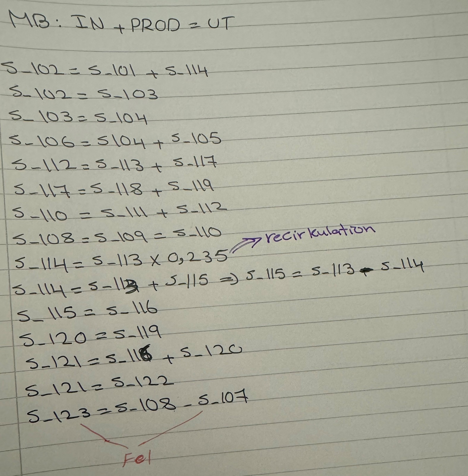 Jag behöver hjälp med denna uppgift som jag bifogar. jag har löst den men har fel bara på två flöden. Flöde S-107 och S-123, där FlödeS-108 är en kombination av S-107 och S-123. Jag behöver hjälp med att förstå hur jag ska lösa dessa två flöden.