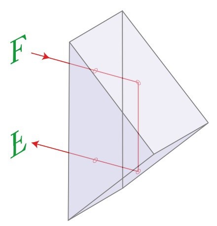 Se bild från Wikipedia. Notera att F:et hamnar uppochner. Ett annat prisma roterat 90° behövs för att vända bilden höger-vänster.