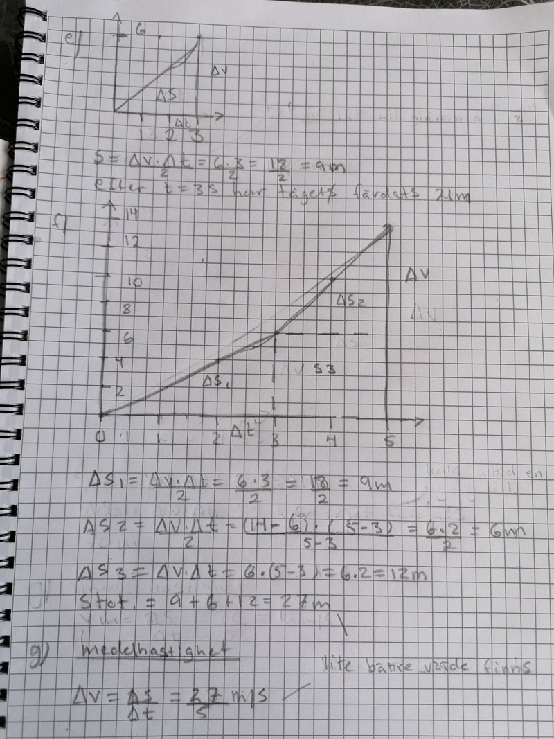 D delen) Naturligtvis ska en acceleration har sin enhet m/s^2. Det kommer jag ändra, det var bara mycket att hålla kolla i början.