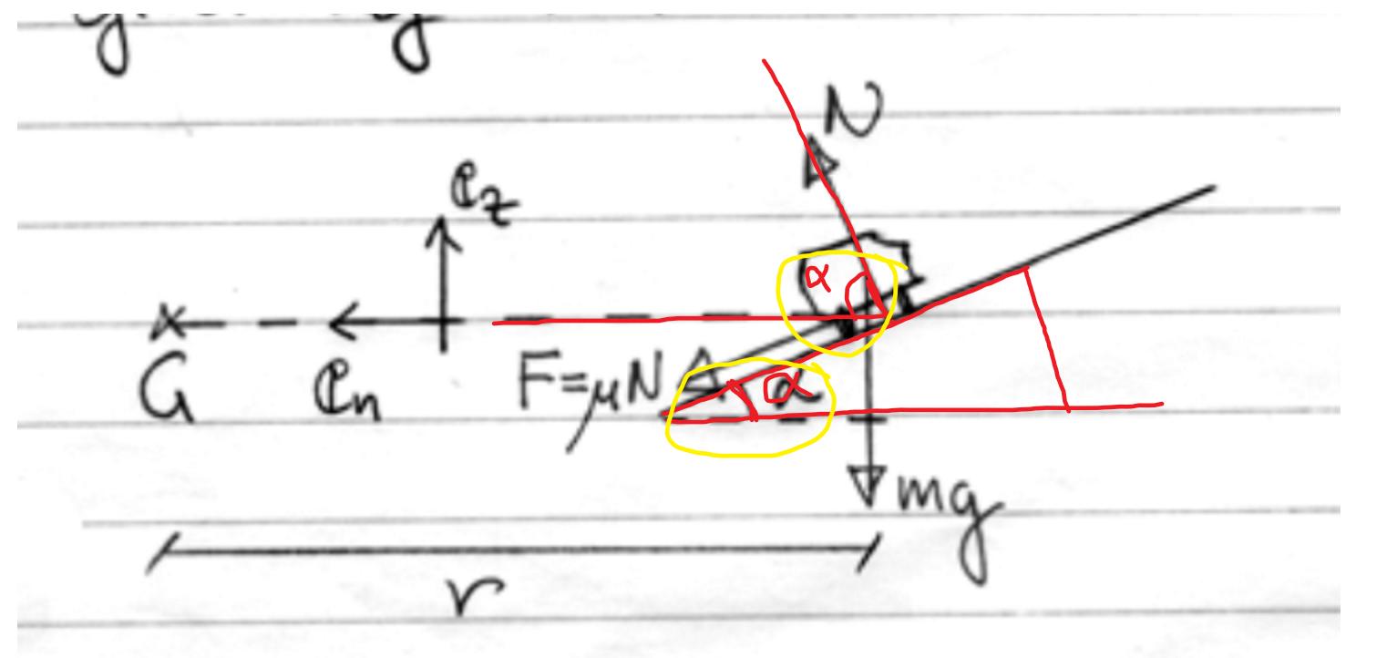 myNcos(alfa) är friktionskraftens komponent i en riktningen.