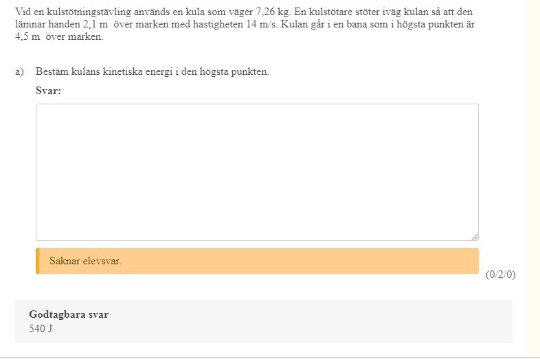 Ture skrev:Den enda förenkling jag vill föreslå är att du lägger nollnivån för lägesenergin vid utkastshöjden. Blir samma svar, med mindre räknande.