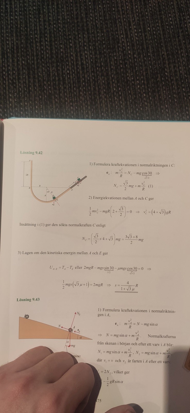 D4NIEL skrev:Det förekommer ingen energiförlust mellan B och D. Alltså är det ointressant vad som händer däremellan. Det viktiga är att när vi börjar förlora energi till friktionen (vid D) har vi den mekaniska energin 2mgR (med linjen BD som nollnivå för den potentiella energin).