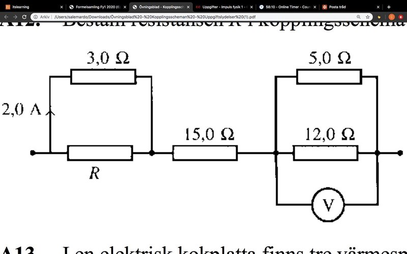 Jag ska bestämma resistansen R i kopplingsschemat nedan. Voltmetern visar 16,0 V. Är helt fast, vet inte hur jag ska gå tillväga