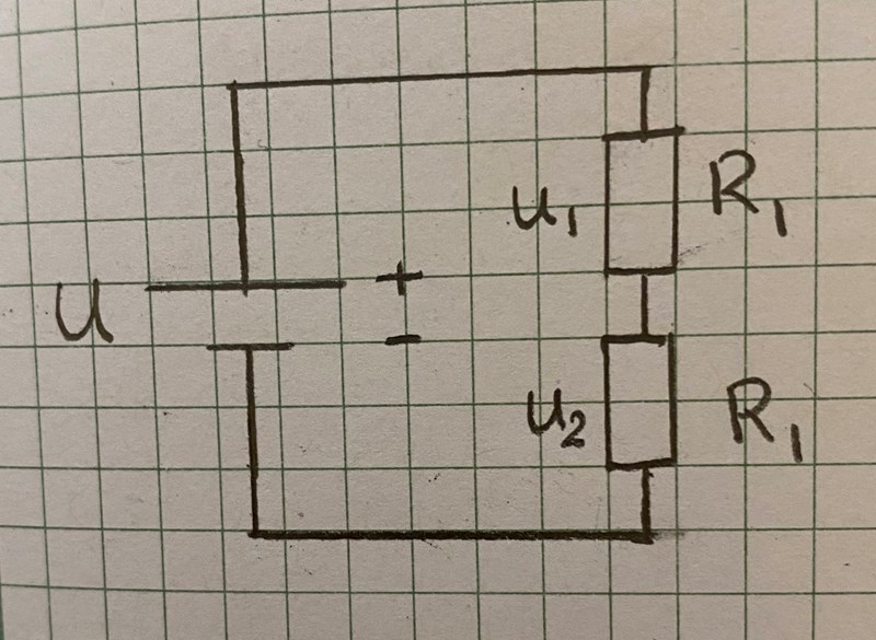 påstås det då att den totala spänningen U ska vara lika med summan av spänningen över de två resistorerna: U = U1 + U2