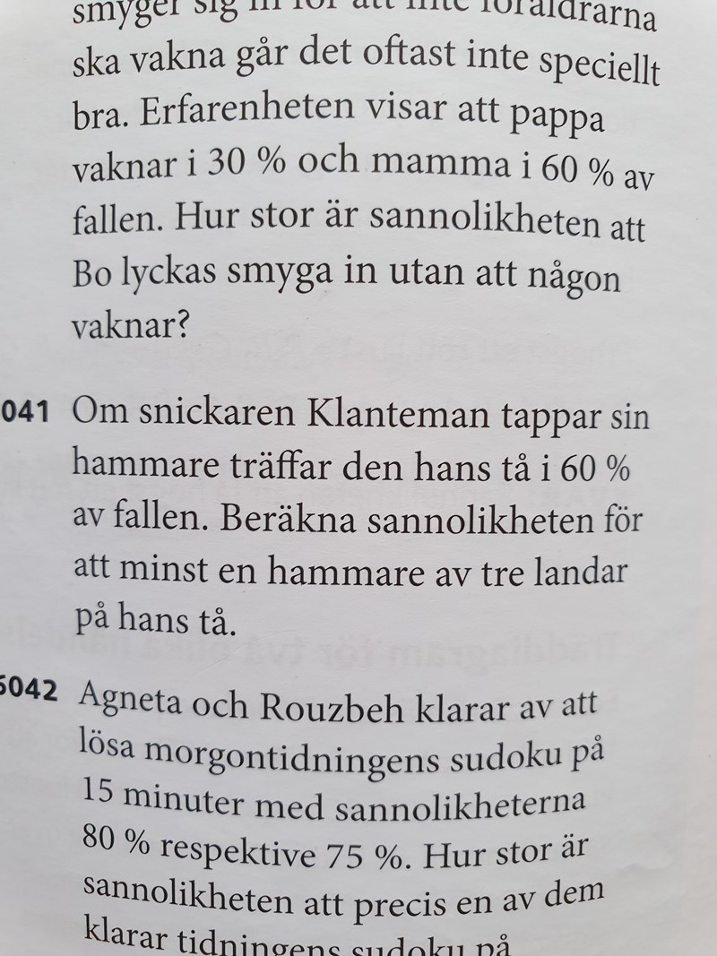 Men det är ju bara 3 gånger han tappar hammaren? Därför har jah inte målat upp fler utfall.. Där den antingen kan träffa tån (60% chans) eller inte (40% chans)