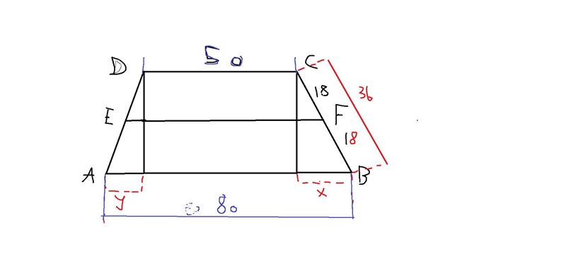 Jag har fått att x+y=30 eftersom att . Jag tänkte även på ekvationsystem men det är en svår fråga. Även prövat med PS för att få ut höjden på figuren. Men först använde jag transversalsatsen för att få ut x. tyvärr blev det inkorrekt.