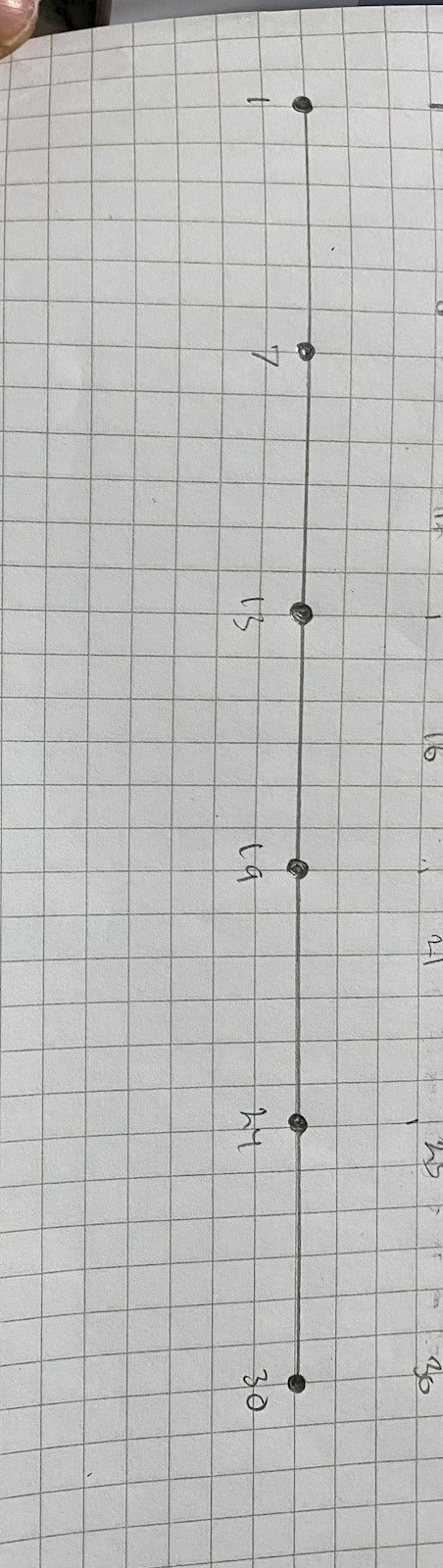 • Låt den första punkten vara vid 0 och den sjätte punkten vara vid 30.